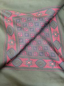 You don’t have to splurge on designer scarves. I’m always on the look-out for fantastic prints – whether it’s the Pucci-inspired geometrics of the fifties or a vivid colourful floral – when I visit vintage shops or flea markets. Furthermore there are plenty of styles beyond the classic silk scarf.